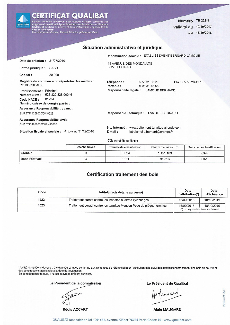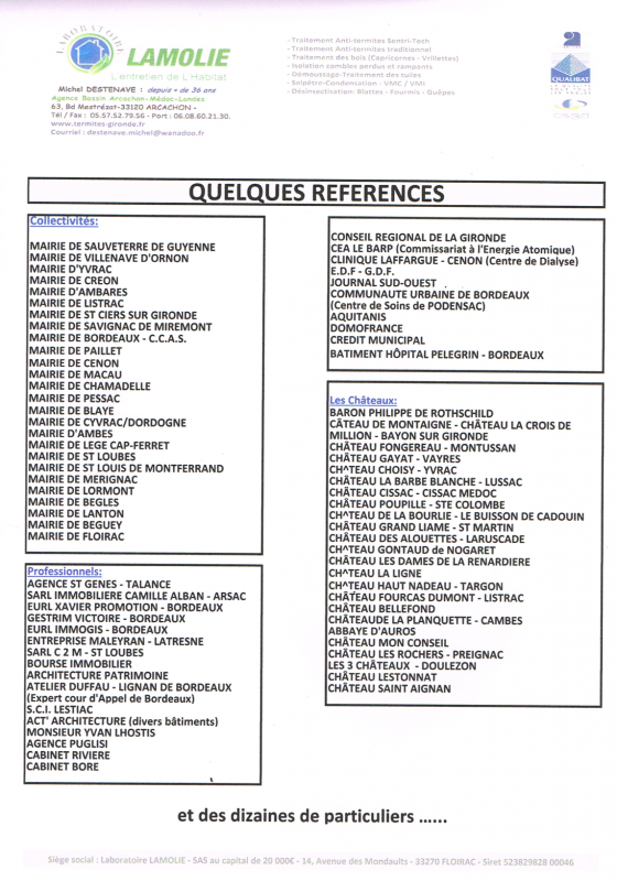 La durée de ces garanties varie en fonction des prestations réalisées et est indiquée sur les devis.