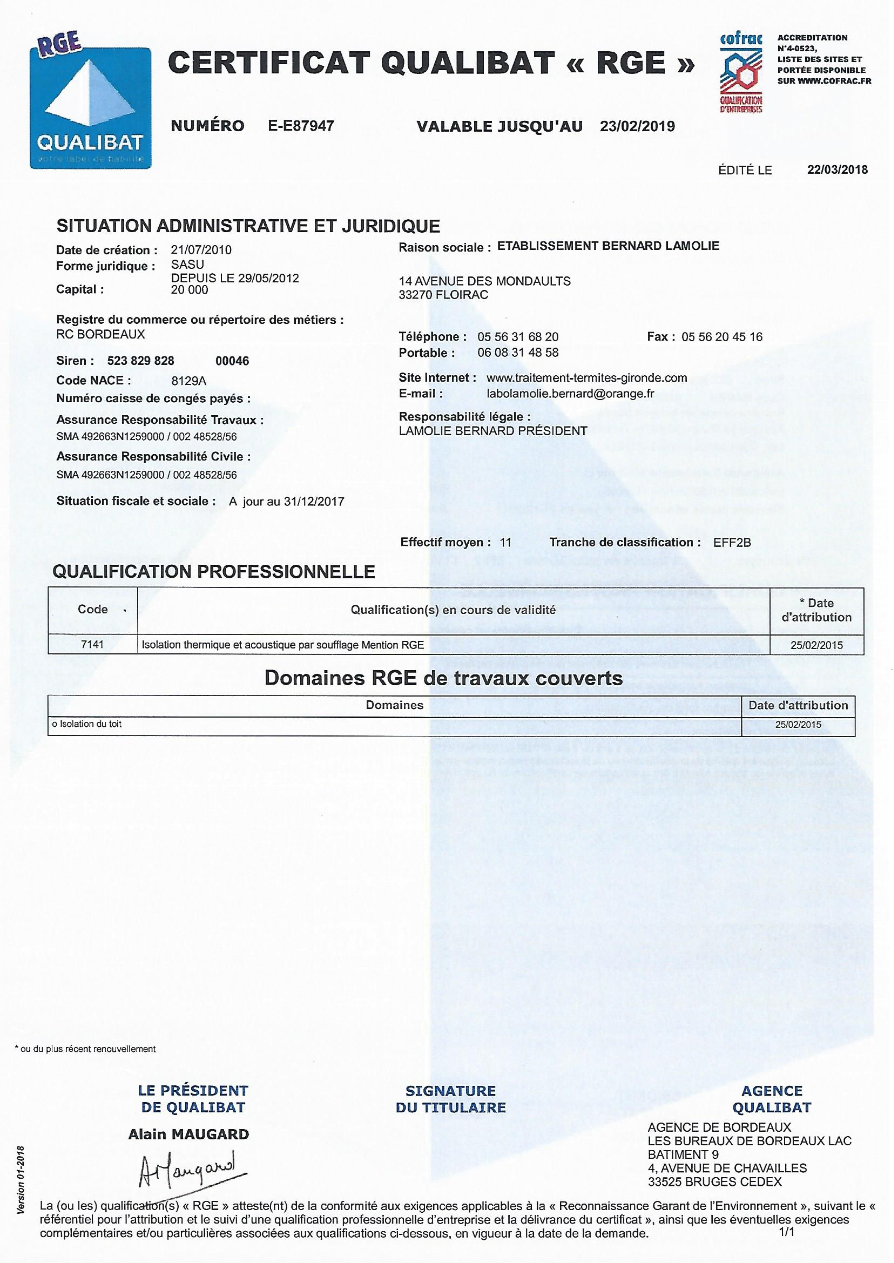 Vous permet de bénéficier des avantages fiscaux liés à vos travaux d'économies d'énergie, à savoir: